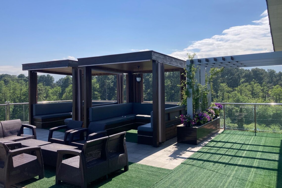 • روف مشترک با سایر واحدها در پشت بام هتل با منظره دریا و جنگل